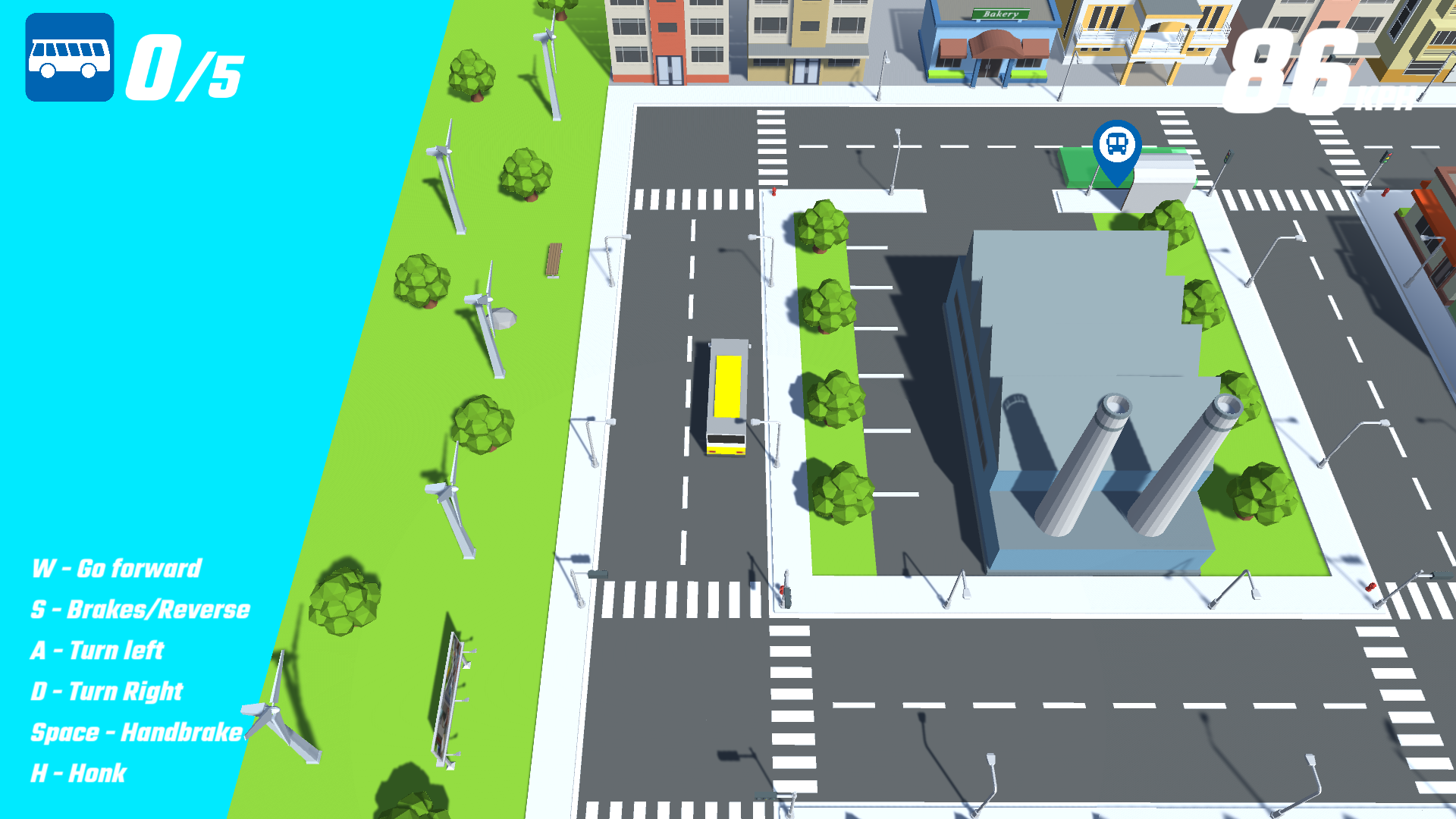 The music is banging the bus handles great I think the games funny my favorite part was signing the work day report my arrow pointing me to the stop glitched at one point and told me to jump in the void but other than that I didn't have any issues! Good job!